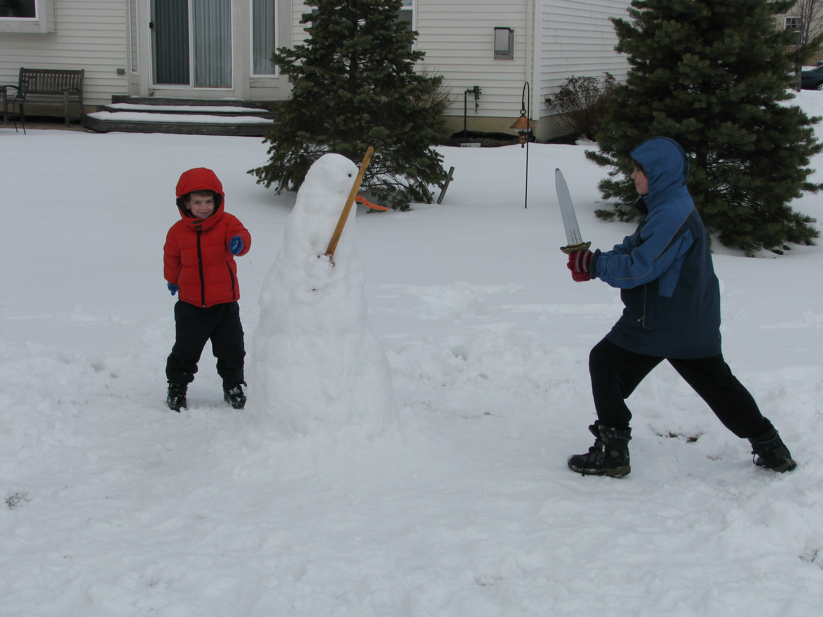 Kieran and the snowman battle to the death – or something like that.