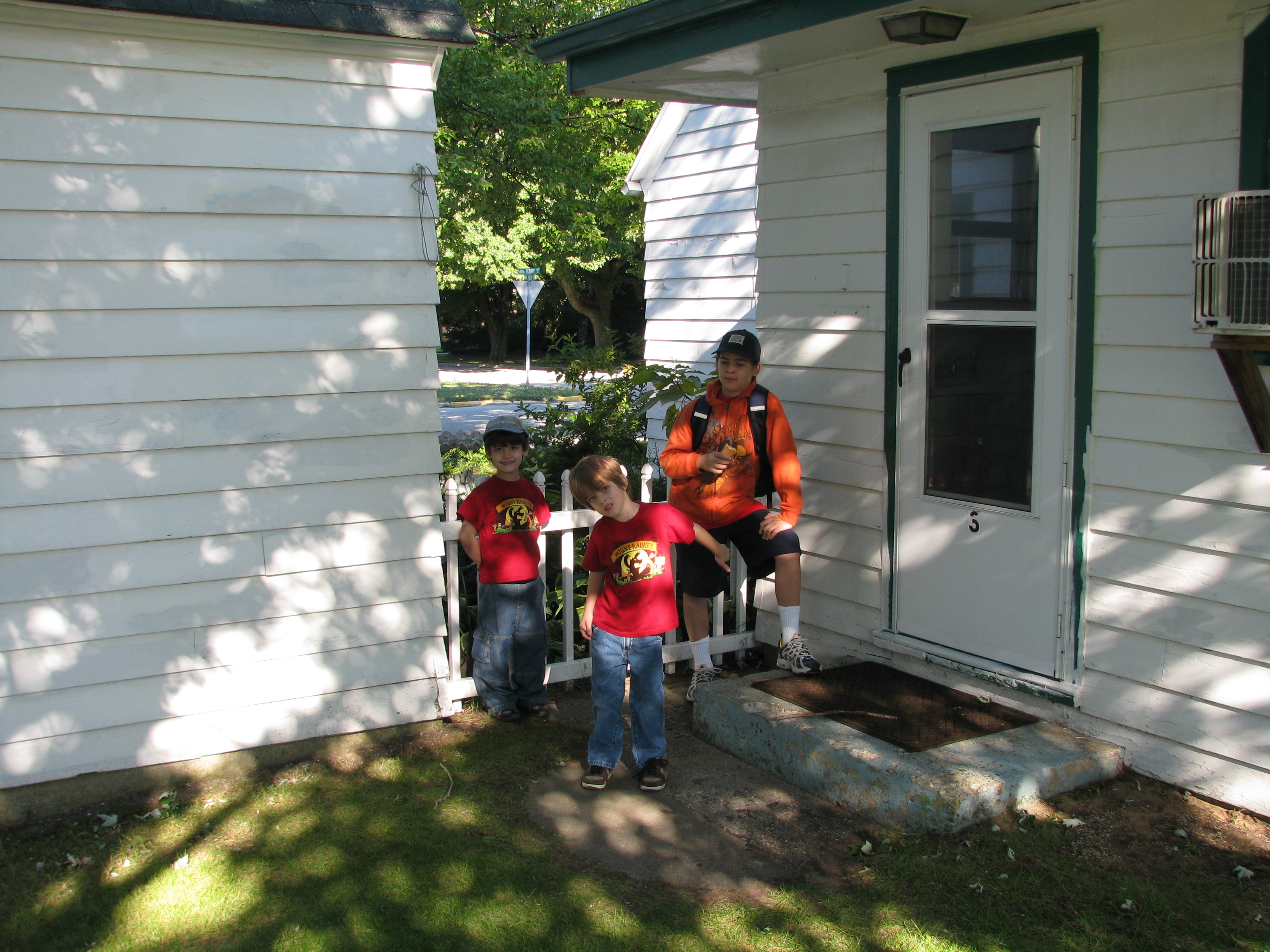 Here are the boys outside our cottage door.